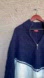 STAUD Navy Blue & White Classic Cableknit Oversized Half Zip Pullover Sweater