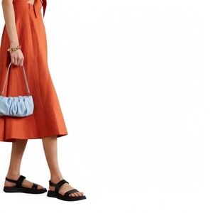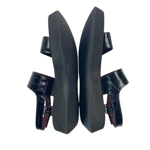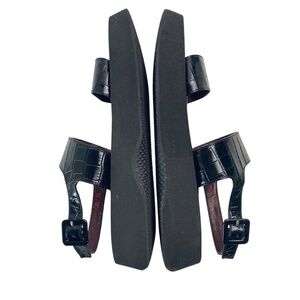 STAUD Nicky Platform Sandals in Crocodile-Embossed Leather Slingback Black Sz 37