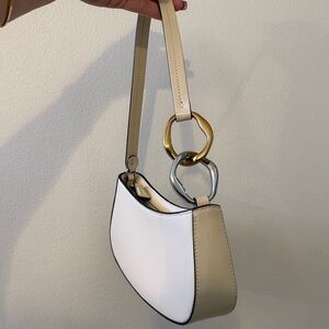 STAUD Off-White Leather Shoulder Bag with Gold & Silver Accent