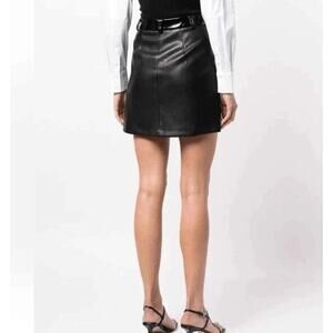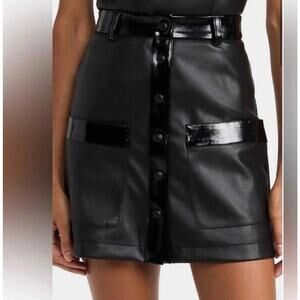 STAUD Paper faux leather mini skirt two tone black patent button down NWT