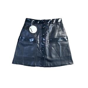 Elevate your wardrobe with this stylish STAUD Paper mini skirt! This brand-new, with tags, faux leather skirt features a chic two-tone black patent design and a button-down front. Perfect for adding a touch of edgy sophistication to any outfit. The skirt is made from high-quality faux leather, offering a sleek and modern look.