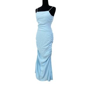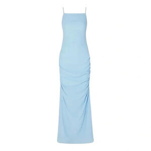 STAUD Parrot Sky Blue Ruched Crepe De Chine Maxi Dress