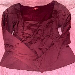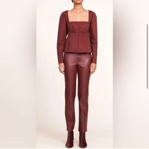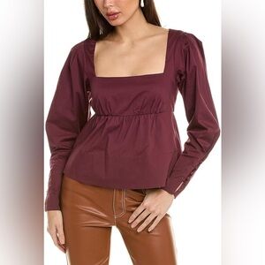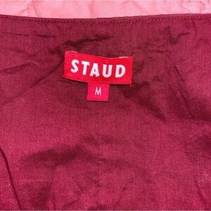 STAUD Peggy Top Poplin Tulle Flounce Blouse in Burgundy/Maroon
