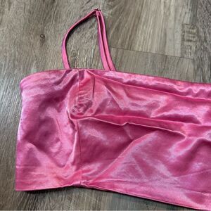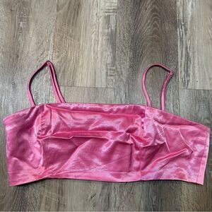 STAUD Pink Bandeau Crop Top Size Medium Satin Silky Barbie Spaghetti Strap