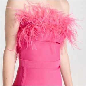 STAUD Pink Nellie Top Strapless Bustier Crop with Ostrich Feathers NWT