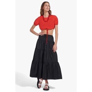 The Prato Top is a short sleeve crop top made out of our sustainable recycled tissue nylon. This top features a drawstring detail at the waist which can be worn loose or fitted for a gathered look.