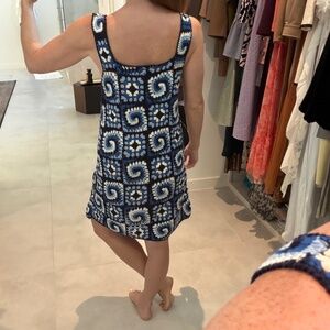 STAUD Psychedelic Crocheted Dress Medium Acid Cobalt Blue Pattern.