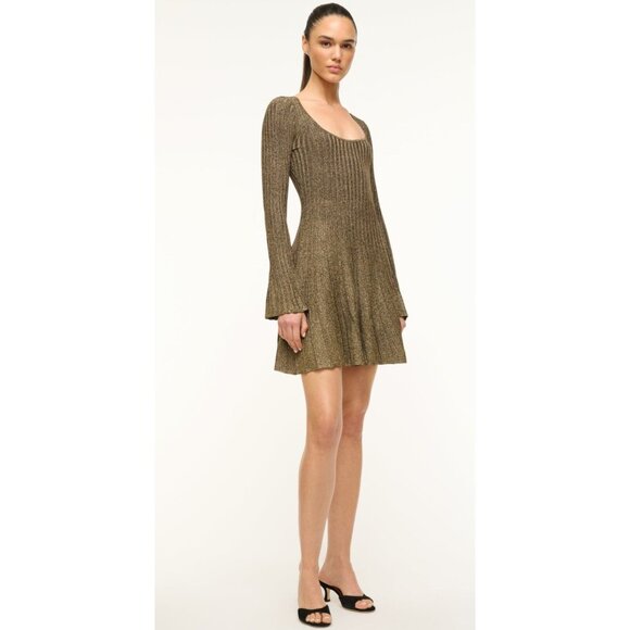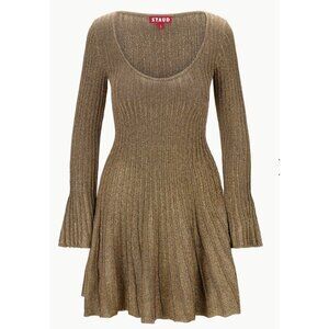 STAUD RAQUEL DRESS METALLIC GOLD LONG SLEEVE SIZE M