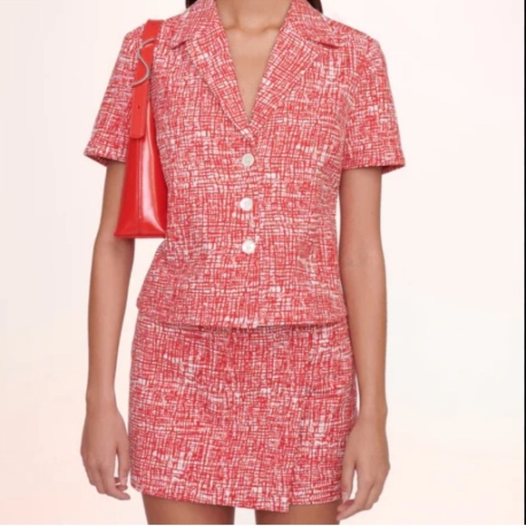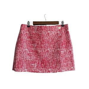 STAUD Red and White Tweed Buttoned Garment Skirt Size L