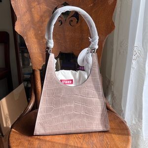 -Croc Embossed Leather Hobo Shoulder Purse In French Gray