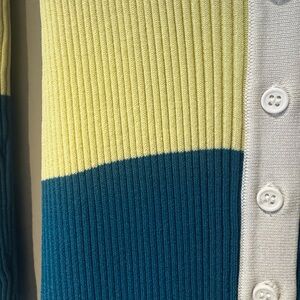 Elegant ribbed knit sweater. Features a soft cream color. Perfect for layering.