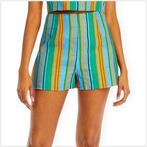 STAUD Rigina Top and Oscar Shorts 2 Piece Set Linen Colorful Stripes NWT 8 10