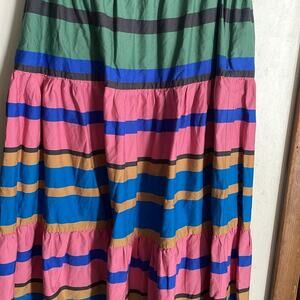 STAUD Sea Tiered Striped Stretch cotton Midi Skirt Multi Formentera Stripe