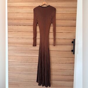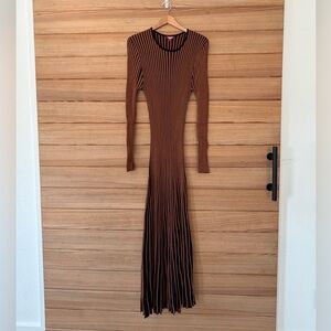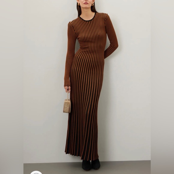 Chic long sleeve dress with striking stripes. Perfect for elegant outings.