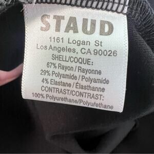 STAUD Sharmila Fitted Sleeveless Midi Dress – Women’s Size 6 – Black In great condition, no flaws Measurements (taken flat): •Pit to pit: 16" •Waist: 13" •Length: 49" Details: •Structured ponte knit fabric •Sleek, minimalist silhouette •Modern crew neckline •Sleeveless design •Thigh-high side slit •Contrast trim detail •Hidden back zipper closure •Bodycon, sculpted fit •68% rayon / 27% nylon / 5% spandex A sleek and timeless silhouette from Staud, the Sharmila dress is your perfect modern essential. This minimalist black midi is crafted in structured ponte knit for a flattering, sculpted fit with subtle stretch. A thigh-high slit adds effortless edge, making it ideal for events, dinners, or elevated everyday wear. black ponte midi, fitted slit dress, minimalist midi dress, modern cocktail dress, designer midi dress, sleeveless sheath dress, evening party dress, little black dress midi, bodycon ponte dress