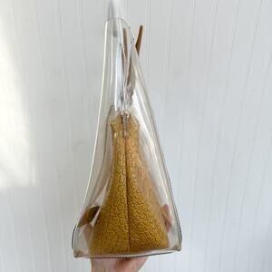 Staud Shirley Clear PVC Croc Embossed Tote Bag Tan Brown Transparent