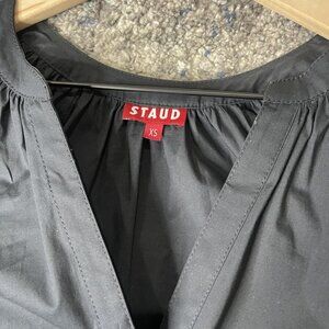 STAUD Shirt Womens XS Black Puff Sleeve Button Front Cropped Blouse Peasant