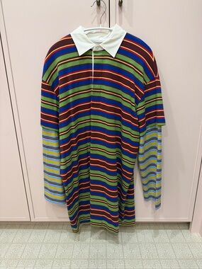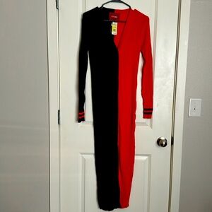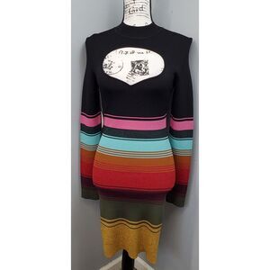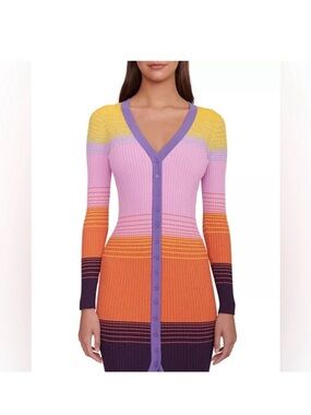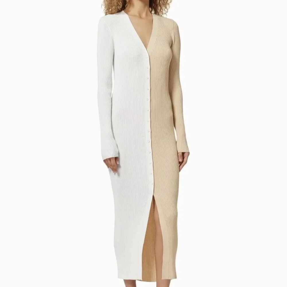 STAUD Shoko Colorblock Ribbed Button Front Long Sleeved Sweater Dress