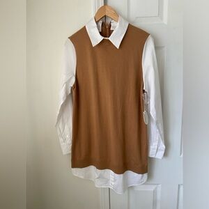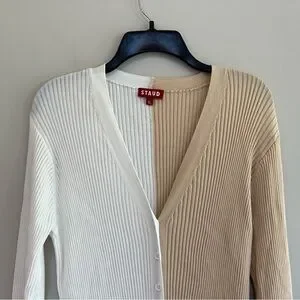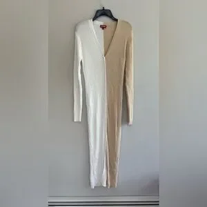 STAUD Shoko Colorblock Ribbed Button Front Sweater Dress, White/Beige, XL