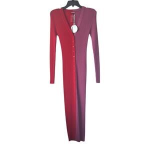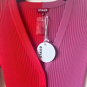 STAUD Shoko Colorblock Ribbed Sweater Dress In Poppy Rosebud Size M