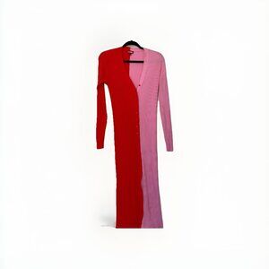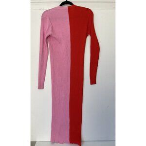 STAUD Shoko Colorblock Ribbed Sweater Midi Dress Pink Red Size L Long Sleeve