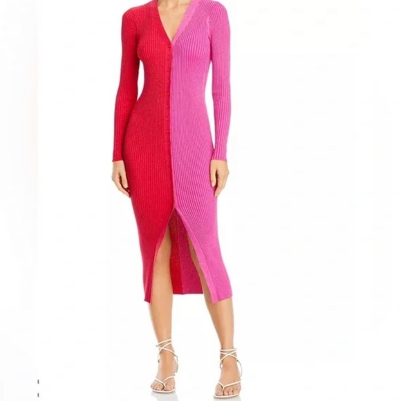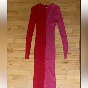 STAUD Shoko Metallic Pink and Red Dress