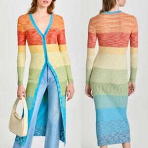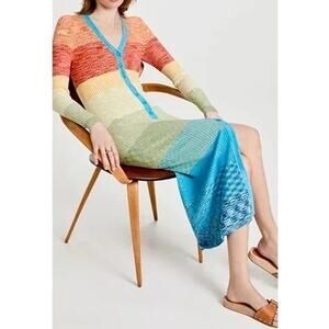 STAUD Shoko Rainbow Ribbed Knit Sweater Dress Size M