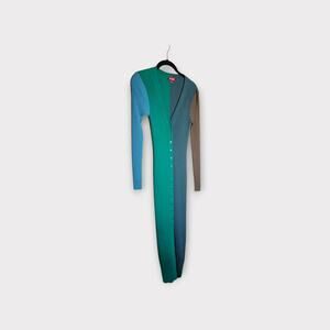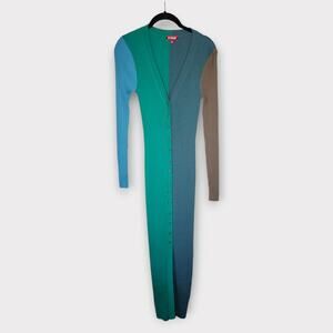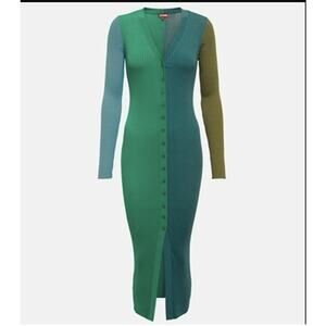 STAUD Shoko Ribbed Colorblock Sweater Dress Green Blue Women's Medium