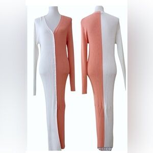 Size XL peach and white ribbed knit long sleeve midi dress. Small hole on the size tag.