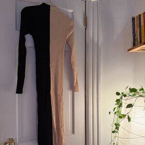Staud designed the Shoko colorblocked midi-dress to be worn as a cardigan or a dress. Fashioned in a body-con silhouette, this two-toned style highlights a plunging V-neck and dainty, tonal buttons down the front.