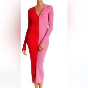 STAUD Shoko Two Tone Split Cardigan Dress Size Large Color Pink Red