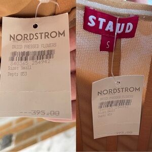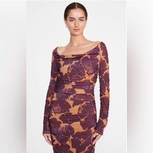 The STAUD Solana Floral Print Long Sleeve Maxi Dress is a garden in motion, capturing the essence of floral elegance with its dried pressed flowers print. The elongated neckline paired with gentle ruching forms a silhouette that gracefully drapes, exuding an effortless sophistication and romantic allure. Its long sleeves and bateau neck translate into a timeless elegance, marrying dreamy charm with modern flair. At 58 inches in length, this maxi dress doesn't just arrive; it makes an entrance.