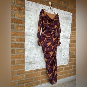 STAUD Solana Floral Print Long Sleeve Maxi Dress in Dried Pressed Flowers small