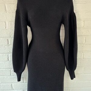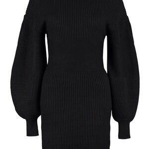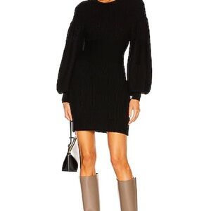 STAUD Sweater Dress Marylebone Black Knit Mini Small Fall Balloon Sleeve, Size S