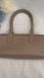 Brown taupe leather top handle bag. Zipper closure. Interior zip pocket. Attached straps.