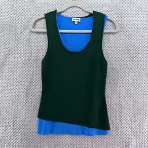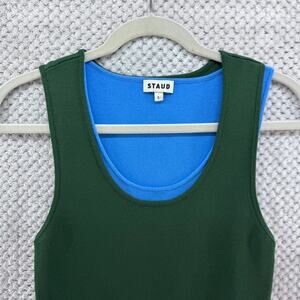 STAUD Top Womens L Green Blue Jungle Sky Hermosa Tank Scoop Neck Fitted