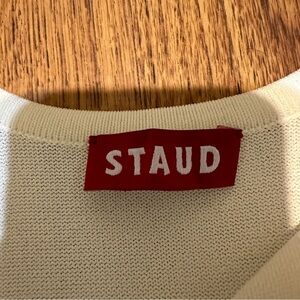 STAUD Two Tone Cream Knit Bell Sleeve Top Blouse knit NO SIZE pleated wrist scoop neckline casual