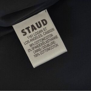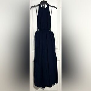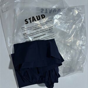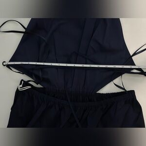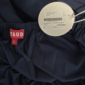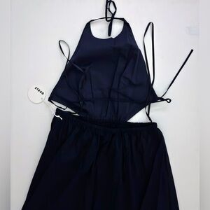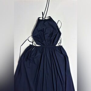 STAUD Vanessa halterneck cotton blend poplin dress pocket tie back midi navy xl