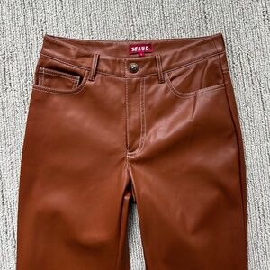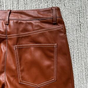 STAUD Vegan Leather Stitch Detail Cognac Pant Sz 4 NEW!!