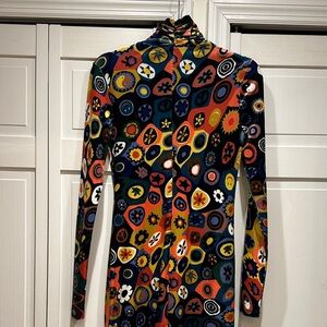 Velvet fitted turtleneck dress with back zip and unique mosaic print. Excellent used condition.