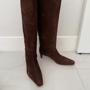 STAUD Wally Suede Knee-High Boots Fall Winter Fashion Designer Dark Brown