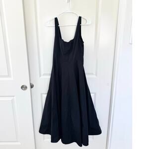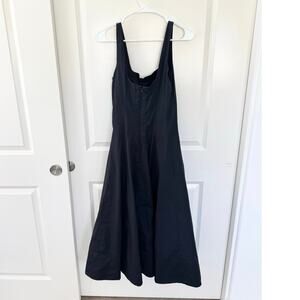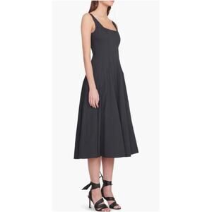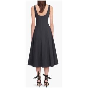 STAUD Wells Cotton Poplin A-Line Square Neck Full Skirt Midi Dress Black 6