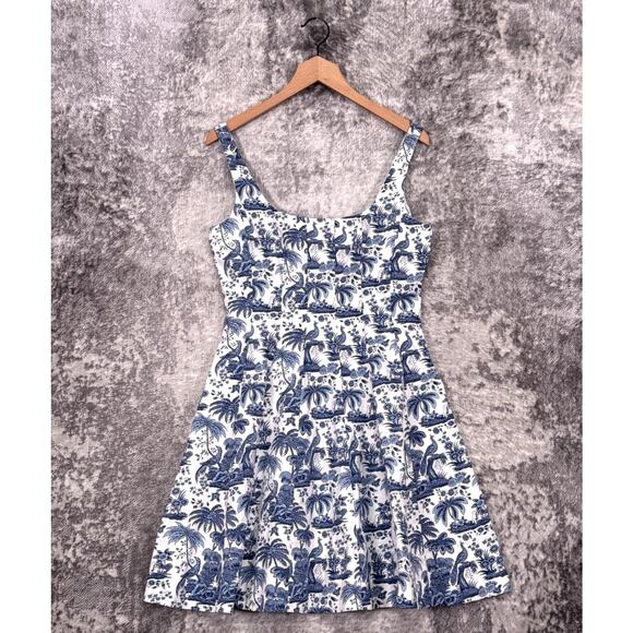STAUD Wells Dress 10 Womens Blue Toile Cotton Printed Mini