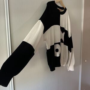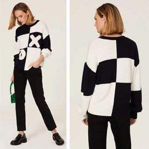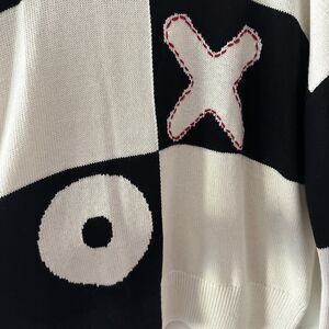 STAUD Womens Tic Tac Toe Sweater Black White Pullover Wool Blend Size XL