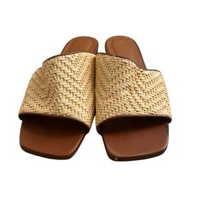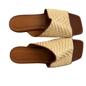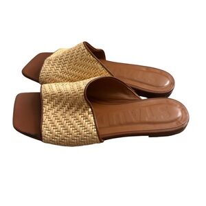 STAUD Woven Raffia Leather Slide Sandals Size 38.5 | Natural Brown Flat Mules