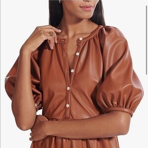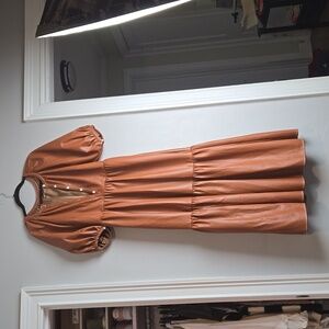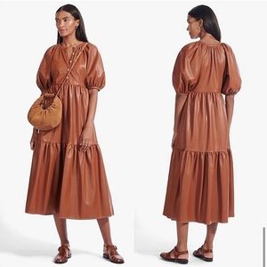 Staud Demi Puff Sleeve Vegan Leather Whiskey Maxi Dress Small
