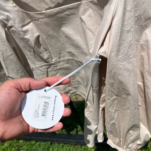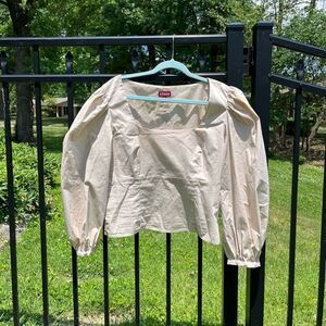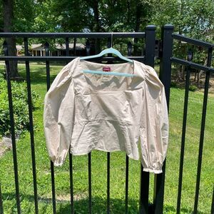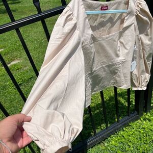 Gorgeous staud lana top in biscotti. Never been worn, with tags attached. Square neckline and puff sleeve. Back zip.