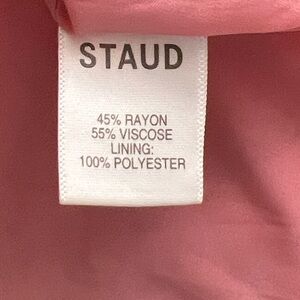 STAUD, PIPER DRESS in BLUSH MUSHROOM, βSTAUDβ Design/PRINTED Size 6 (MSRP$395) Side-Zip, Back Split, #mushrooms levate your look with this rare STAUD mushroom print maxi dress β a whimsical yet sophisticated design featuring delicate red mushroom motifs on soft blush pink. Cut with a flattering empire waist and flowy bell sleeves, this dress moves beautifully with every step. Scoop neckline with tie detail and charming keyhole cutouts at the back add a touch of modern romance. Hidden back zipper, full lining, and a back slit ensure comfort and ease of movement.