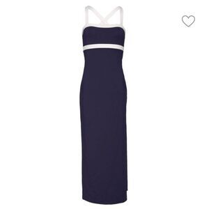 STAUD Navy/White Augustine Womens Knit Square Neck Maxi Dress Sz S NWOT