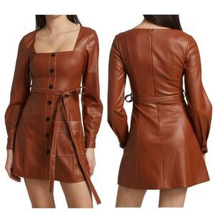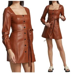 STAUD Oz Faux Leather Belted Mini Dress